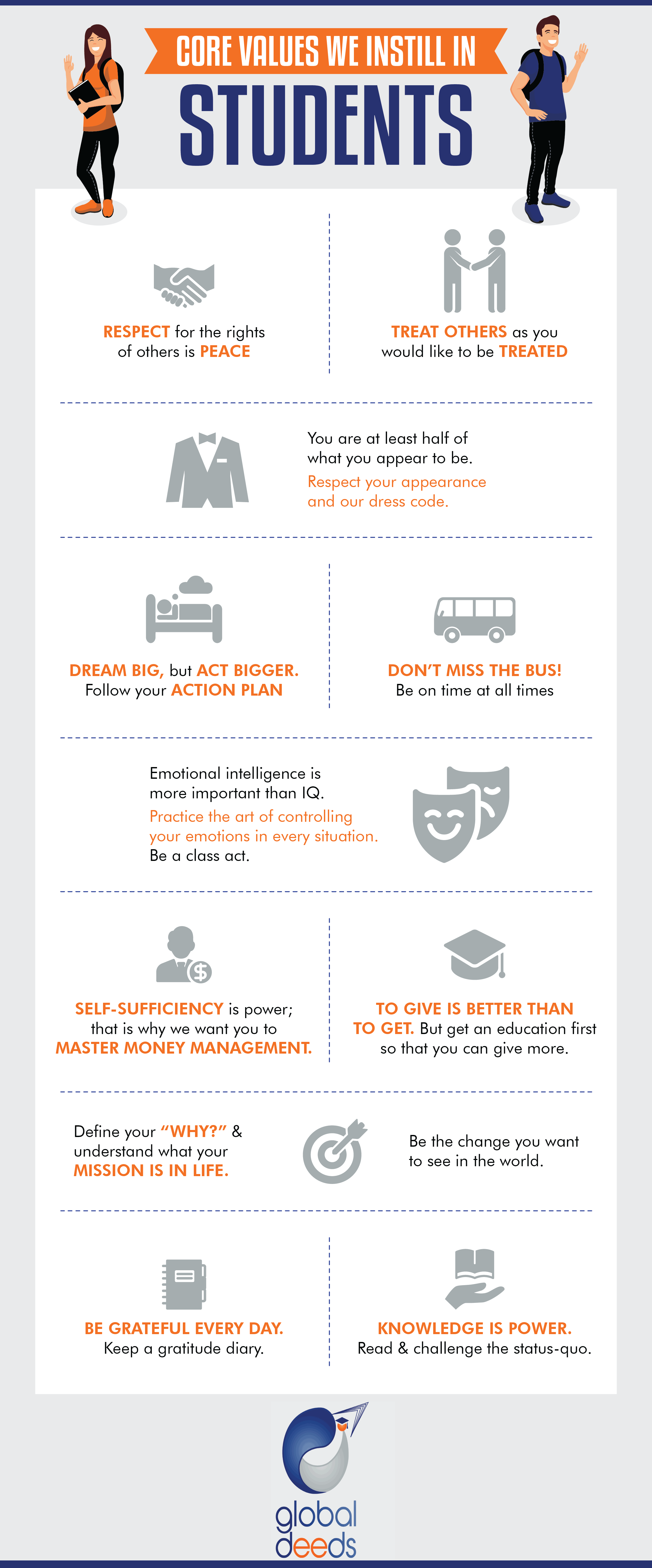 The first system that we work on is the human mind. We teach students how to lead their lives without having to wait for the change in others, as they become the change themselves.